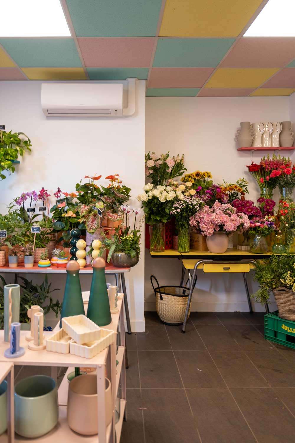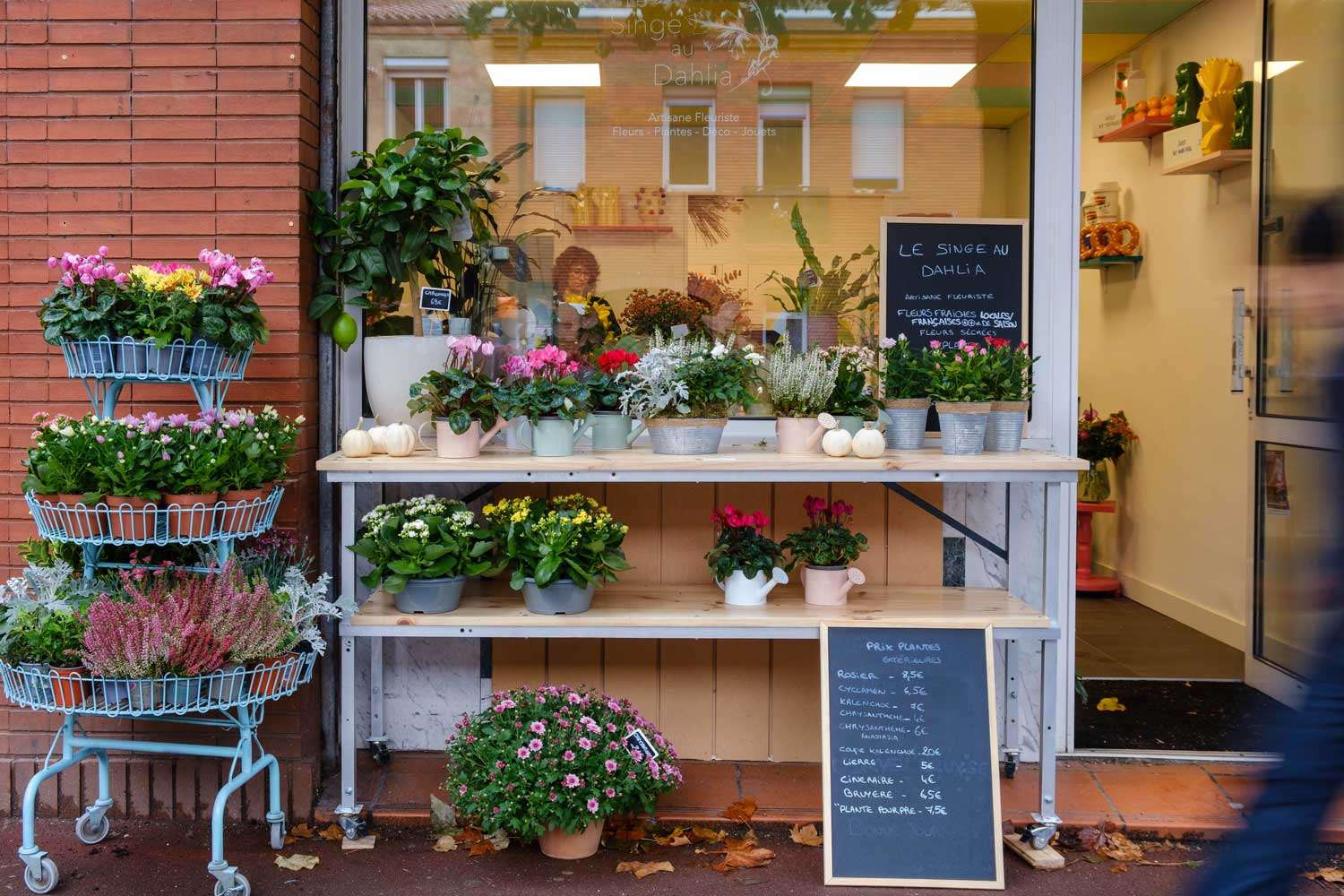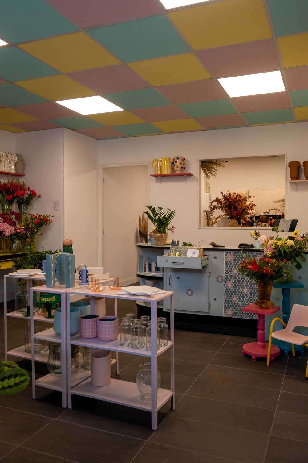 Pour la boutique de fleurs Le Singe au Dahlia, nous avons assuré le suivi de chantier ainsi que la conception et la réalisation de mobilier en réemploi, pensé spécifiquement pour l’activité de la fleuriste.