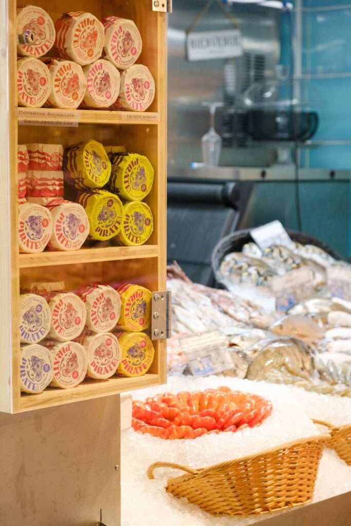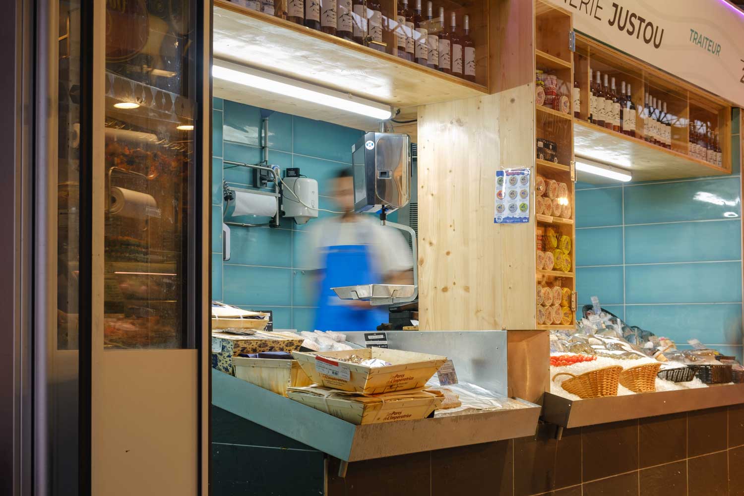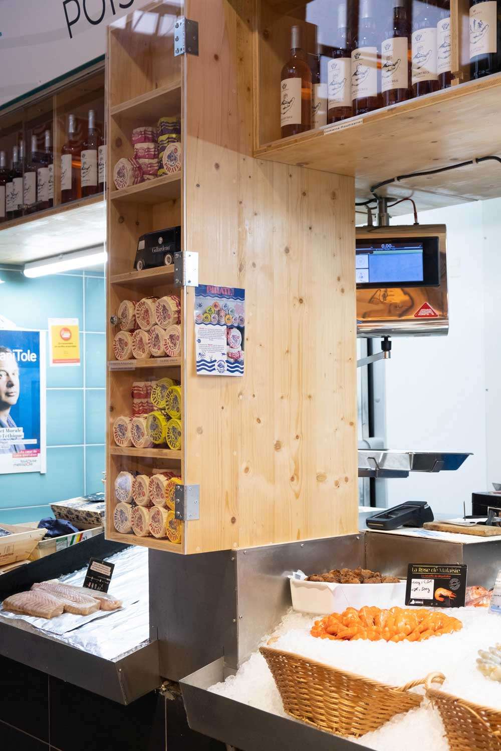 Au cœur du marché couvert de Saint-Cyprien, haut lieu de la gastronomie toulousaine, nous avons conçu et réalisé un ensemble de rangements personnalisés pour un étal de poissonnerie. Ce projet illustre parfaitement notre engagement à créer des aménagements commerciaux qui répondent aux exigences spécifiques des métiers de bouche tout en s’inscrivant dans une démarche d’économie circulaire.